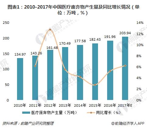 近年來,伴隨著醫(yī)學(xué)技術(shù)進(jìn)步及人民生活水平、健康狀況的提高,臨床上大量使用一次性醫(yī)療衛(wèi)生用品,醫(yī)療廢棄物的產(chǎn)生量大幅提升。據(jù)前瞻產(chǎn)業(yè)研究院測(cè)算,2016年,我國醫(yī)療廢棄物產(chǎn)生量已達(dá)到191.96萬噸,同比增長5.22%。