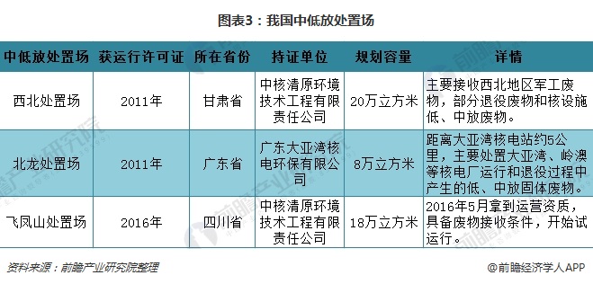 另外,以每年每臺(tái)核電機(jī)組產(chǎn)生60立方米固體廢物包計(jì)算,預(yù)計(jì)2020年我國每年將產(chǎn)生多達(dá)3480立方米的固體廢物。然而,我國目前僅有中低放核廢料處置場(chǎng)3座,分別為西北處置場(chǎng)、北龍?zhí)幹脠?chǎng)以及飛鳳山處置場(chǎng),其規(guī)劃容量分別20萬立方米、8萬立方米以及18萬立方米。因此,我國中低放處理能力十分緊缺,按照國務(wù)院印發(fā)的“十三五”生態(tài)環(huán)境保護(hù)規(guī)劃,提出要建設(shè)5座中低放射性廢物處置場(chǎng)。